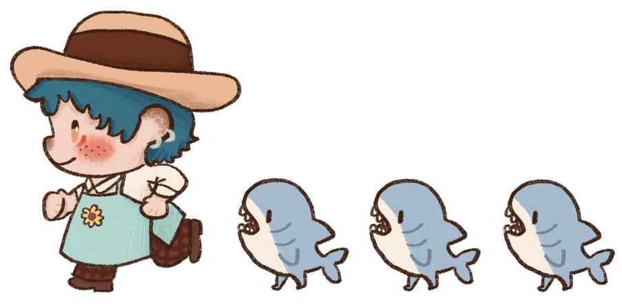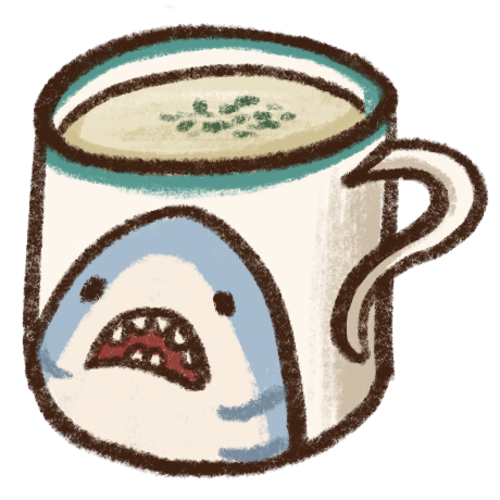 a shark of few words. pretends (?) to be a stuffed shark to avoid interaction.